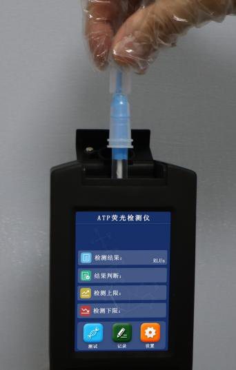 采用化學(xué)反應(yīng)檢測ATP,用拭子采集標(biāo)本,拭子被緩沖液浸濕,這樣有助于從干燥或濕潤的表面提取生物物質(zhì)(ATP)。拭子也含有一種可以沖破生物膜的試劑,使其下可能存在的生物體暴露出來。標(biāo)本采集后,拭子應(yīng)浸泡在能將細(xì)胞內(nèi)ATP釋放出來的容劑中。而后細(xì)胞內(nèi)部釋放出的ATP、以及拭子從設(shè)備表面抹取的ATP再拭子獨(dú)特的液體試劑一起反應(yīng)。拭子的液體試劑含有兩種螢火蟲酶---熒光素和熒光素酶,蟲熒光素和蟲熒光素酶在ATP存在的條件下會發(fā)光。發(fā)出的光可由冠宇儀器ATP熒光檢測儀進(jìn)行檢測。檢測的發(fā)光量與ATP的總量成正比。數(shù)值越高,表明ATP的量越多,也就意味著表面的殘留物越多。