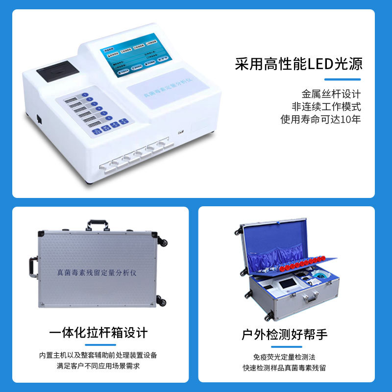 深芬儀器CSY-YG701真菌毒素快速測定儀能夠快速定量檢測糧食、飼料、谷物、食用油、調(diào)味品等食品中T2毒素、嘔吐毒素、赭曲霉毒素、伏馬毒素、玉米赤霉烯酮,適用于糧油監(jiān)測中心、糧油飼料生產(chǎn)加工、食品加工貿(mào)易、畜禽養(yǎng)殖戶自查、質(zhì)監(jiān)部門用于市場快速篩查等,能夠快速準(zhǔn)確定量檢測出食品中的真菌毒素含量,杜絕真菌毒素超標(biāo)食物流入市場。